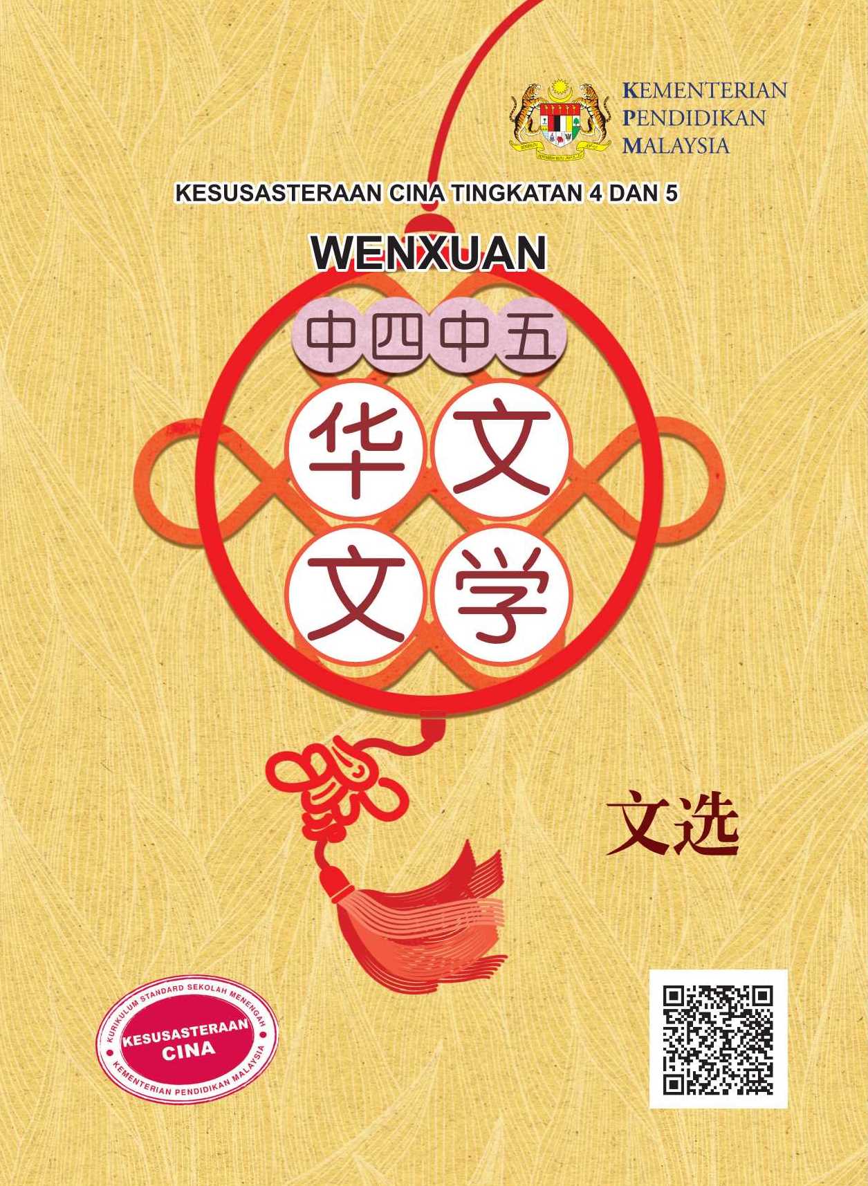 《中四中五华文文学课本》是根据马来西亚教育课程发展司《华文文学课程与评价标准》和考试局中国文学试卷考试范围而编订的。《文选》的选文共有二十篇,即《鱼我所欲也》、《独之武退秦师》《冯谖客孟尝君》《鸿门宴》《陈情表》《唐诗五首》《答刘正夫书》《三戒》《游褒禅山记》《糟糠自厌》《赵子龙长坂坡救幼主》《闲情记趣》《我的梦,我的青春》《我们对于一棵古松的三种态度》《灯》《新诗二首》《囚绿记》《钓胜于鱼》《常读常新的人鱼公主》。